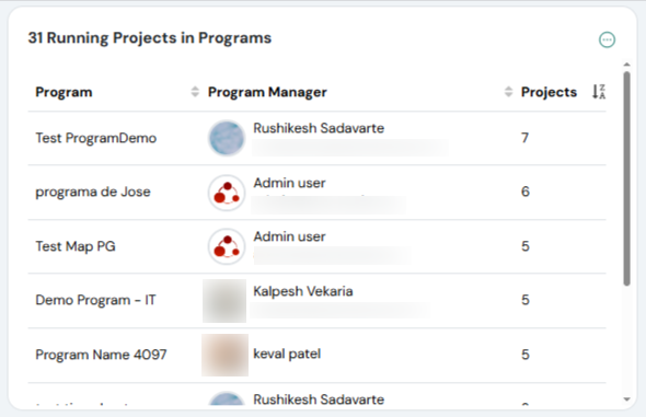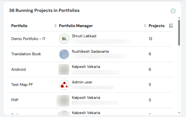 This widget helps users quickly identify high-risk projects that need urgent action.