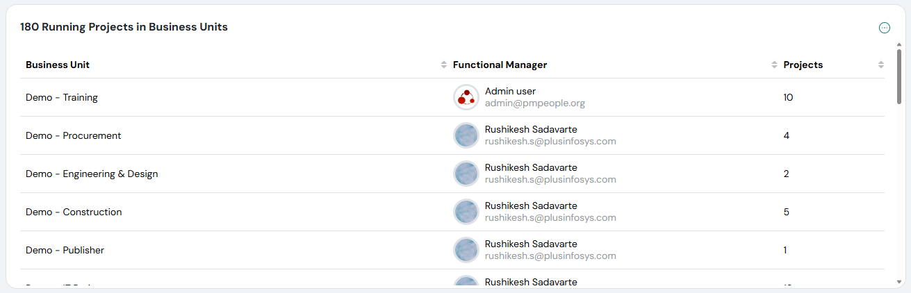 This helps users understand how projects are distributed across different business units and who is responsible for managing them.