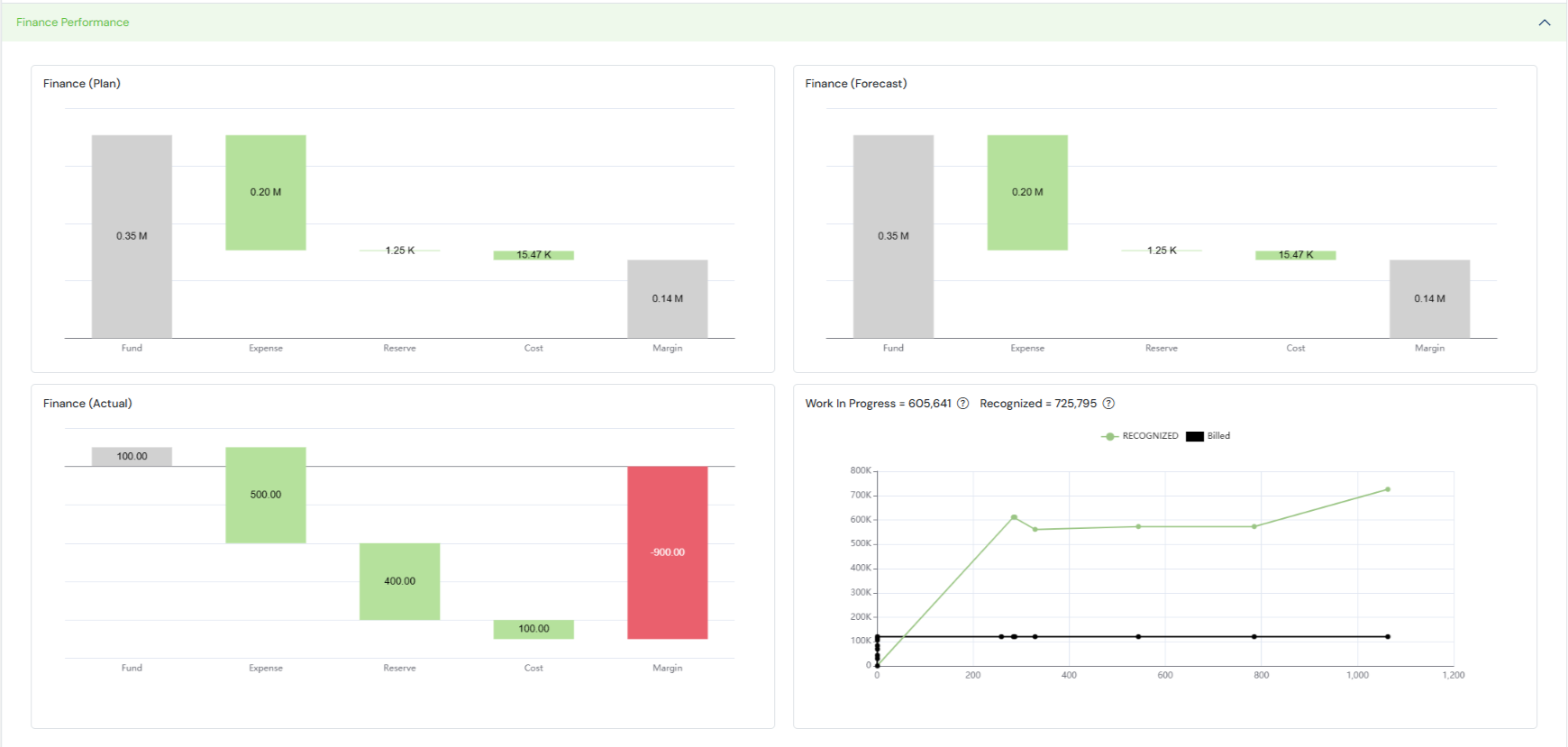 Open section FINANCE PERFORMANCE to see a summary of finance performance as baselined, planned, and actual for work package #0.