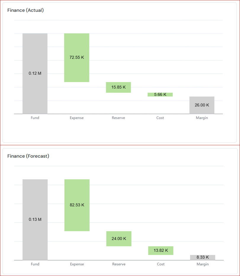 If toggle [Actual/Forecast] is set to right, they can forecast finance status at the project closure: