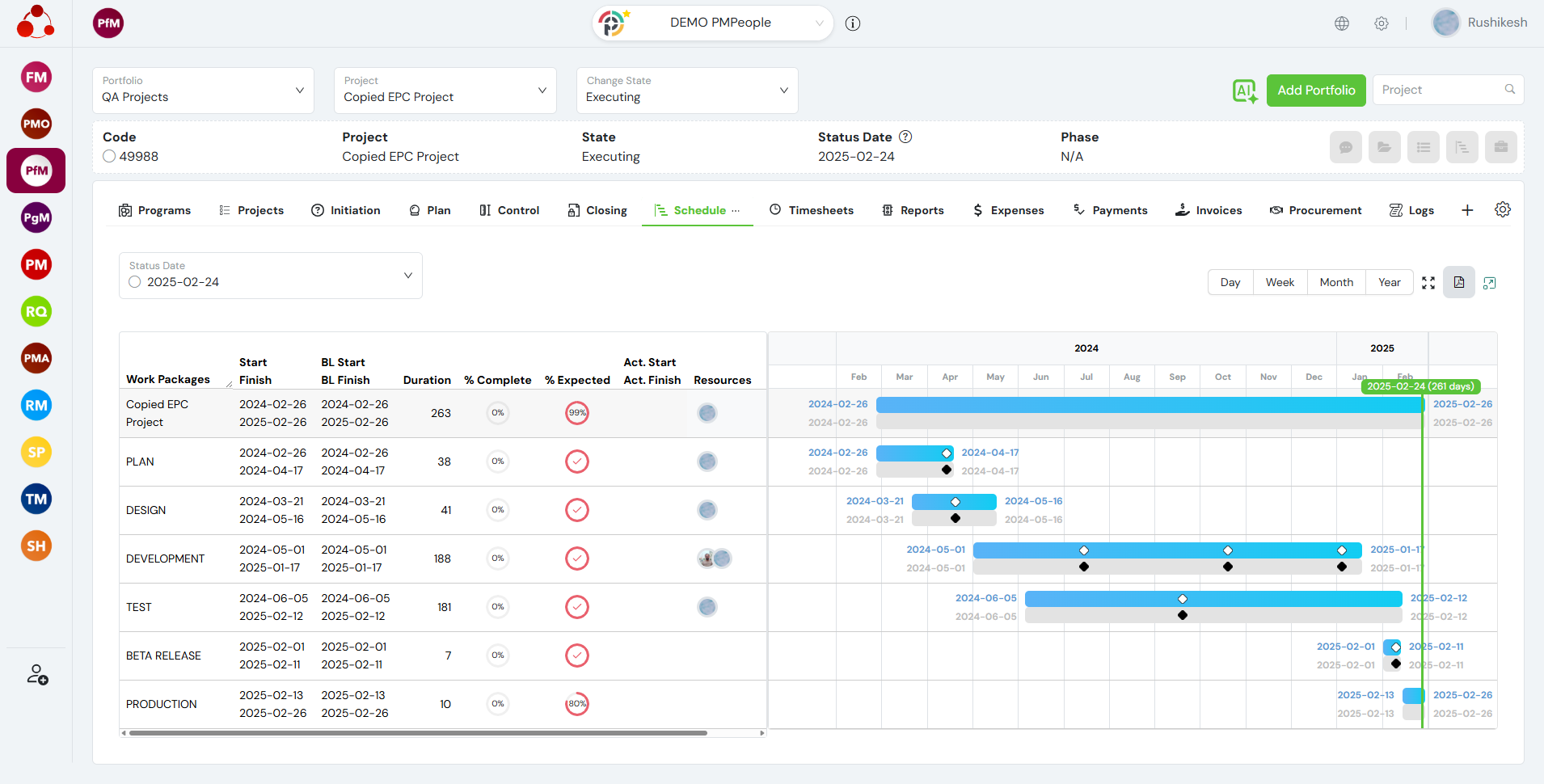 Portfolio Managers (PfM) can view portfolio schedule, one line per portfolio component, at More… > SCHEDULE: