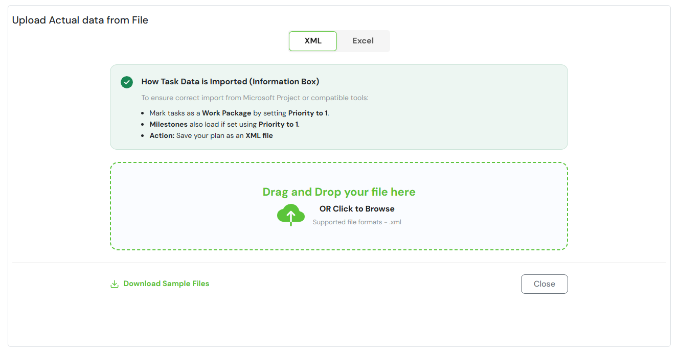 Project managers, or any other management role (PMA, PMO, PfM, PgM), can import schedule and cost tracking data from Microsoft Project®—other scheduling tools like SmartSheet, Primavera, ProjectLibre, etc., can export data as this XML format. If you use some of these tools for performance tracking, you don’t need to repeat the same process in PMPeople.